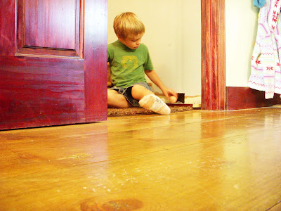 A few weeks ago Tim discovered that the trim would flip down on either side of the fireplace, because we never screwed it back on after the fireplace redo last year. How is it that the little stuff just goes undone until you just forget about it? He was so excited about his new secret discovery that Ben decided to take it one step further and cut a hole there so he could hide things in the wall.